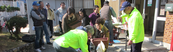 「花で飾ろう我がまち」を合言葉に花いっぱいの住みよいまちづくりをめざし、最初のこころみとして、希望するお宅の玄関先に花鉢を飾っていただくこととしました。(3月26日、27日実施)希望者に各地区公民館でペチュニアの苗、土、プランターを配布し、通りに面したところへ配置していただくようお願いしました。 色とりどりのペチュニアのプランターが玄関先で彩をそえています。