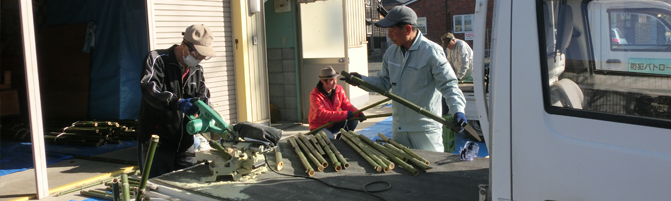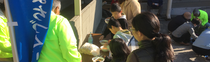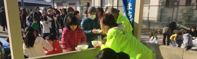 協議会の年末恒例行事、第4回目の「ミニ門松づくり」が12月18日(日)小春日和の中、神社小学校で実施され、70組の募集に応じた三世代約180名の参加者が会場に集まりました。 神生会長の挨拶に続き、鈴木市長の激励挨拶をいただき、会員が2週間前から準備した材料を手に門松づくりを開始しました。参加者は竹、松、葉牡丹などをバランスよく配置するのに係員の助言を受けながら一対の門松を作り上げました。作り方をめぐり家族間で議論し合う微笑ましい光景もありました。 作成後は暖かい日差しの中で、女性会員による温かいトン汁を味わいながら、皆で出来栄えを語り合っていました。