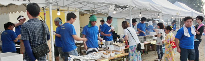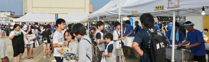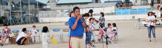 昨年、はじめての試みとして、5町の住民がこぞって楽しめることをめざし「夏まつり」をまちづくり協議会の事業として実施しました。 手探りの中で始めた事業でしたが、スポーツ振興会、各町親子会等の協力を得て、八百人余の参加を見、手ごたえを得ました。 絆づくり事業として今年も昨年ご協力を頂いた皆様になお一層の尽力をあおぎ、第2回5町合同「夏まつり」を神社小学校で挙行しました。 まだ、暑さの残る中、神生修会長の開会あいさつでスタートしました。 設けられた縁日屋台は10ブース、で昨年より1時間早く開店したところ、早々に子供たちが押し寄せ昨年以上の人出となりました。