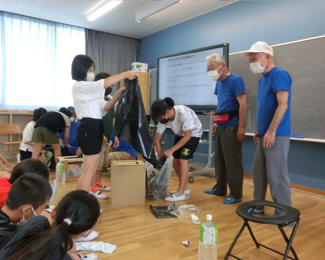 活動の一環として、市の危機管理課の協力を得て、防災体験学習を実施しました。
